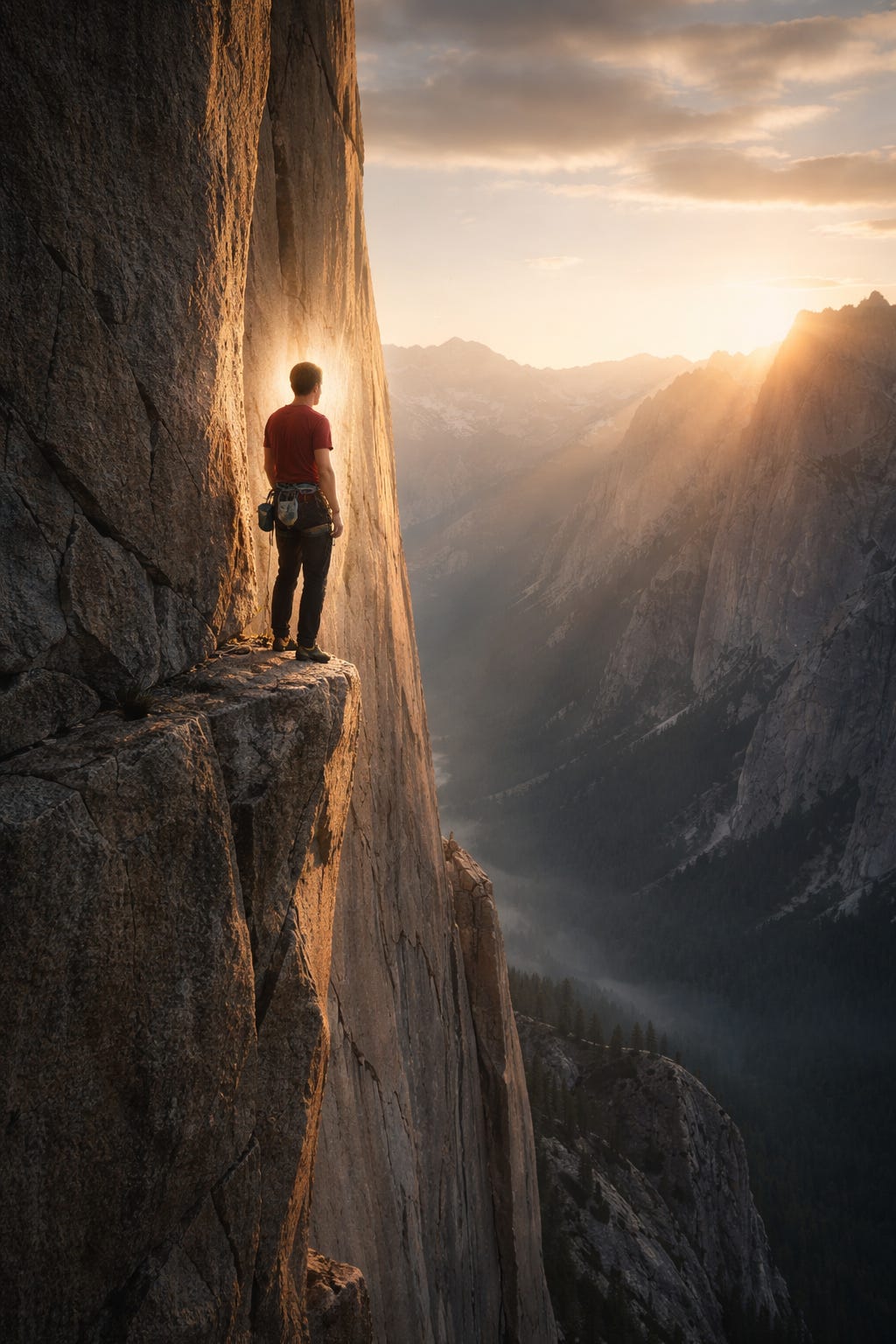 The vertical path is a metaphor with teeth. Ascent requires leaving the ground behind. Commitment grows with elevation: the higher you go, the more consequence attends each move. There are no-fall zones in every life: moments when the stakes are real and there’s no going back. And at the top, if you arrive, the view reveals that the mountain was internal all along.